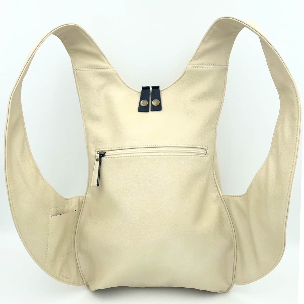 The zipper tabs fold down to the back of the bag to hold them in place with snap fasteners. It is then impossible to open the bag without the person feeling it on their back.