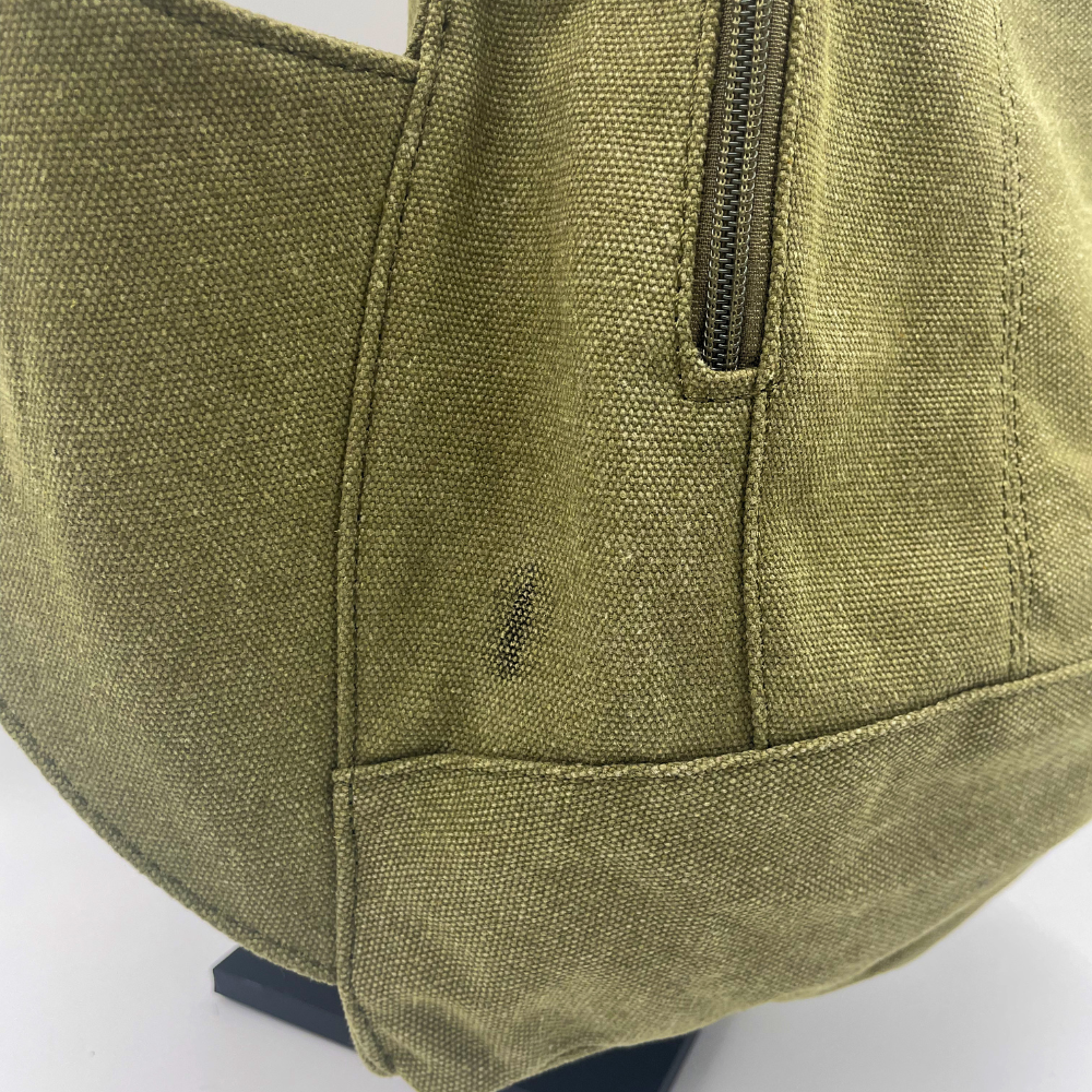 -Tâche dans la matière sur le bas du sac à gauche, très peu visible.